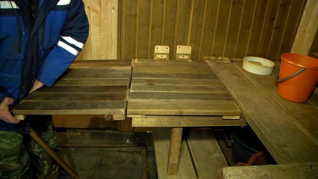 Изготовление в бане складного полка и пола.