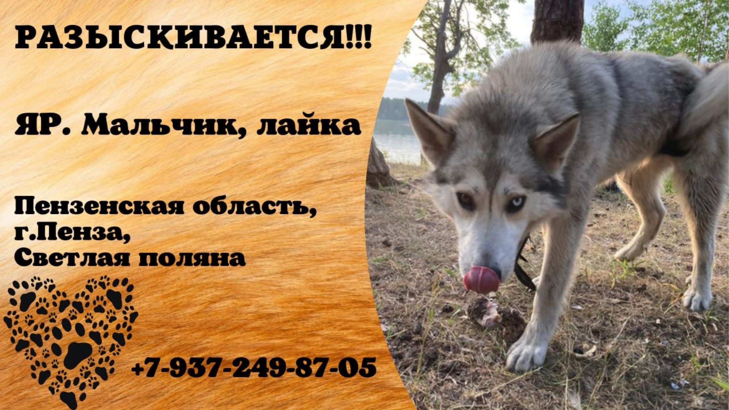 Пропала собака! ЯР. Мальчик, лайка. Пензенская обл., г.Пенза.