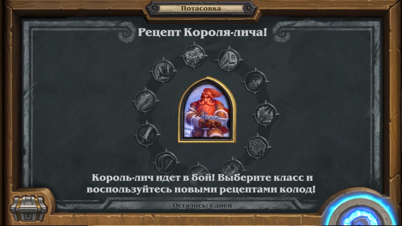 Потасовка в Hearthstone, в период с 07.12.2022 - 14.12.2022 Потасовка: Рецепт Короля-лича! Король-лич идет в бой! Выберите класс и воспользуйтесь новыми рецептами колод!
