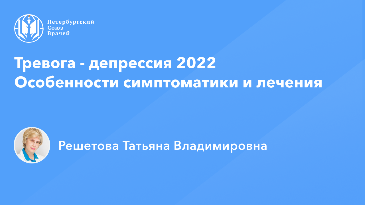 Профессор Решетова Т.В.: Тревога - депрессия 2022. Особенности симптоматики и лечения