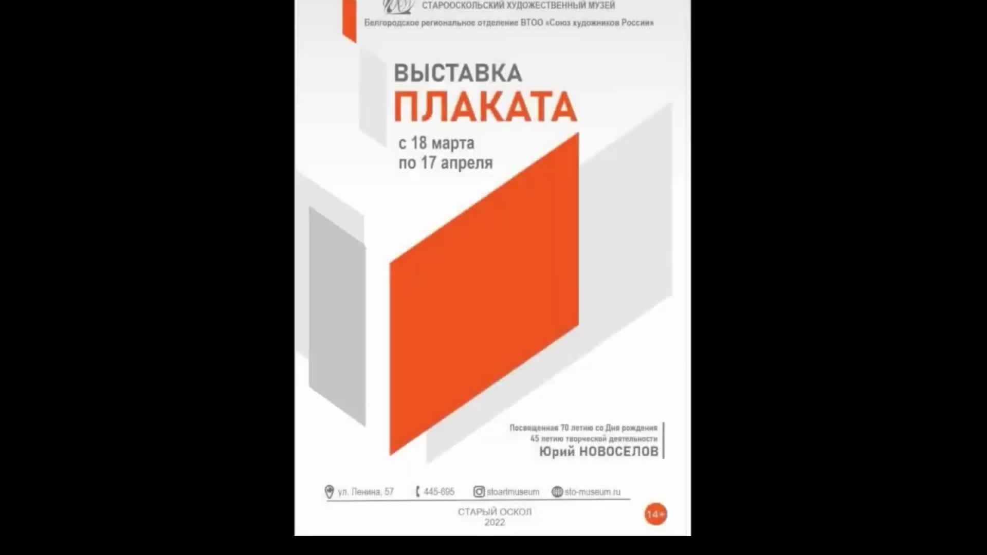 «Кто не понимает моего молчания, едва ли поймут мои слова», - обращается к зрителю художник Юрий Новоселов, перефразируя в плакате слова философа Элберта Хаббарда. Ранее произведения автора старооскольцы могли видеть на коллективных выставках, организованных музеем на разных площадках города, однако как художник-плакатист автор предстает перед публикой впервые. На презентации юбилейной персональной выставки плакатов Юрия Новоселова присутствуют заместитель начальника управления культуры администрации Старооскольского городского округа Елена Владимировна Сухенко, коллеги-художники Анатолий Галюзин, Юрий Болотов, Владимир Кузько, Александр Филиппов, Григорий Бугаков, профессиональное музейное сообщество, близкие и родные автора выставки. Для старооскольцев выставка Новосёлова это возможность задуматься о главных ценностях жизни. Экскурсию по выставке проводит Дина Чевычелова.