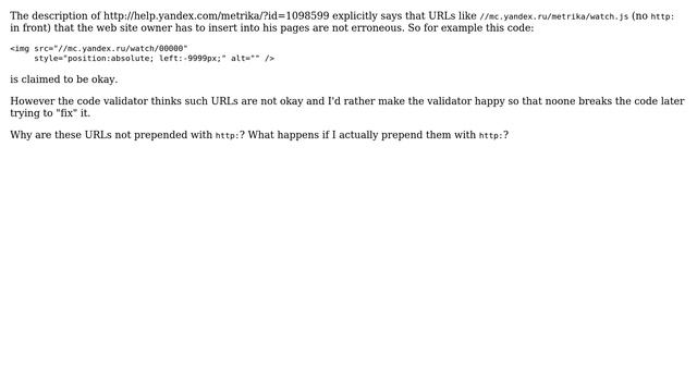 Webmasters: What's the deal with URLs for Yandex.Metrica not prepended with "http"?