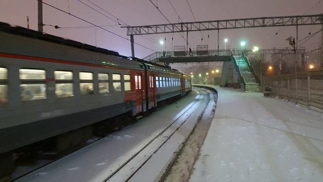 16 января 2021 года в 21:39 платформа Серп и Молот перегон Москва-Курская -Нижегородская горьковское направление Московская железная дорога Moscow-Petushki departure ED4MK-0085 from Serpa and Molot January 16, 2021 at 21:39 Serp and Molot platform section Moscow-Kurskaya -Nizhegorodskaya Gorkovskaya direction Moscowskaya railway