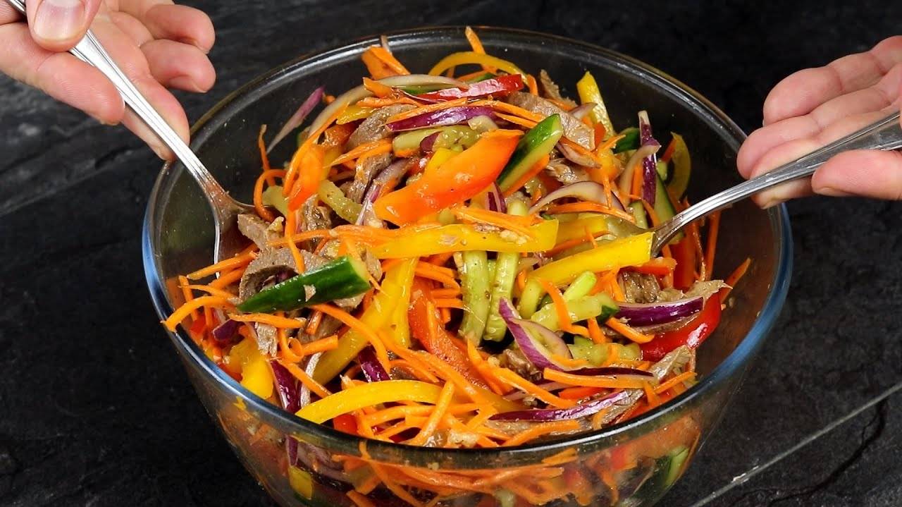 Ни одного праздника без этого салата! Сочный хрустящий салат! Нравится ВСЕМ! И на праздник и на ужин! Обязательно попробуйте! Приятного аппетита! Рецепт: Огурцы - 1 шт (крупный) Сладкий перец - 2 шт Лук - 1 шт Морковь - 1 шт Отварная говядина - 200 г Соевый соус - 3 ст.л. Чеснок - 2 зубчика Кориандр - 1 ч.л. Черный перец Растительное масло - 3 ст.л. Уксус 9% - 1/2 ст.л. Соль по вкусу вкусные советы, вкусные советы салаты, вкусные советы рецепты, кулинария, рецепт, простой рецепт, recipe, вкусный рецепт, лучший рецепт, салат,