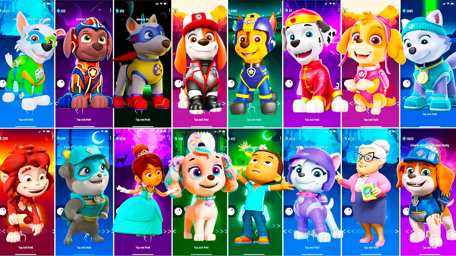 Мультики для Детей Щенячий Патруль Tiles Hop - РОККИ, ЗУМА, ГОНЩИК, МАРШАЛЛ, СКАЙ, ЭВЕРЕСТ