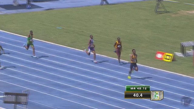 Devante Heywood (Munro) takes victory in the Class 3 boys 400m in 50.22 Champs 2017