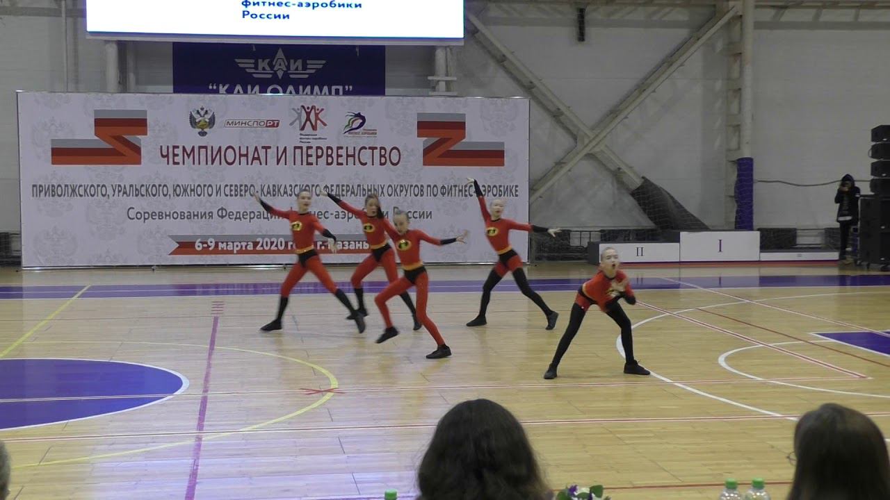 Аэробика (5 человек). Юноши-девушки 11-13 лет. Соревнования Первенства Приволжского, Южного, Северо-Кавказского и Уральского федеральных округов по фитнес-аэробике в 2020 году. РТ, г. Казань, ул. Чистопольская, 67, КСК "КАИ Олимп" 06-09 марта 2020 г.