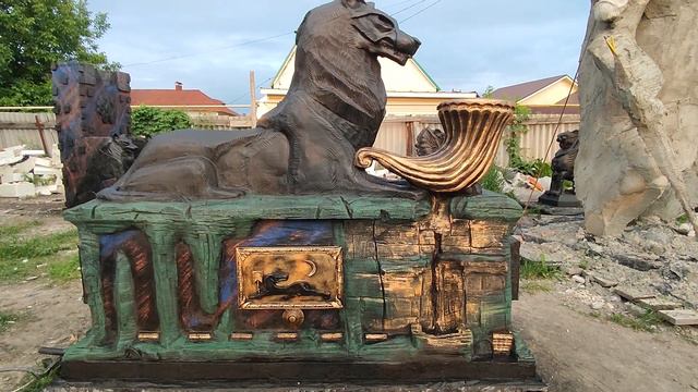 скульптура волк фонтан подсветка музыка все в нем арт бетон