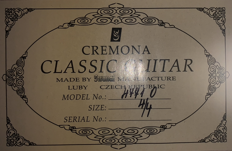 Гитара Cremona 4771 O - Чехия Размер: 39" (4/4) Верхняя дека: кедр-массив Нижняя дека и бока: клен темный(матовая) Гриф: бук Накладка грифа: клен (тонированный) Струнодержатель (бридж): клен (тонированный) Маркеры ладов: точки Колки: никелированные Цвет: натуральный Мензура: 650 mm