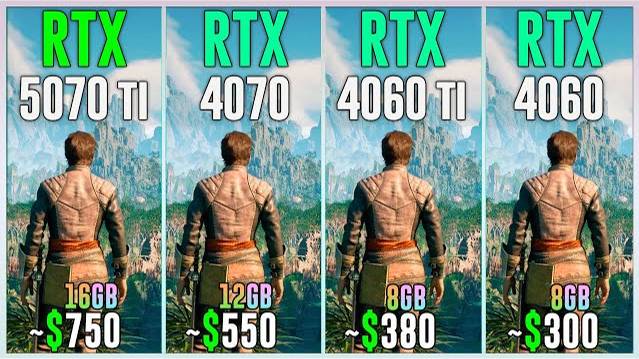 RTX 5070 TI vs RTX 4070 vs RTX 4060 TI vs RTX 4060 - Test in 25 Games 2025 1080p, 1440p, 2160p, 4k, 2k, dlss 4, dlss 3.7, ray tracing, frame generation, native, Multi Frame Generation ⏩GPUs & Amazon US⏪ (Affiliate links) 💥RTX 5070 TI 16GB: https://amzn.to/4198utc 💥RTX 4070 12GB: https://amzn.to/446Zqpd 💥RTX 4060 TI 8GB: https://amzn.to/3NldmFR 💥RTX 4060 8GB: https://amzn.to/3NskoYp ⏩PC Setup⏪ - OS: Windows 11 Professional 64-bit - CPU: Ryzen 7 9800X3D - MB: GIGABYTE X870 AORUS Elite - RAM: Corsair Vengeance RGB 32GB DDR5 - 6400 Mhz CL32 💁♂️ When you buy from my Amazon links, I earn a small commission at no extra cost to you, plus you support the channel thank you.