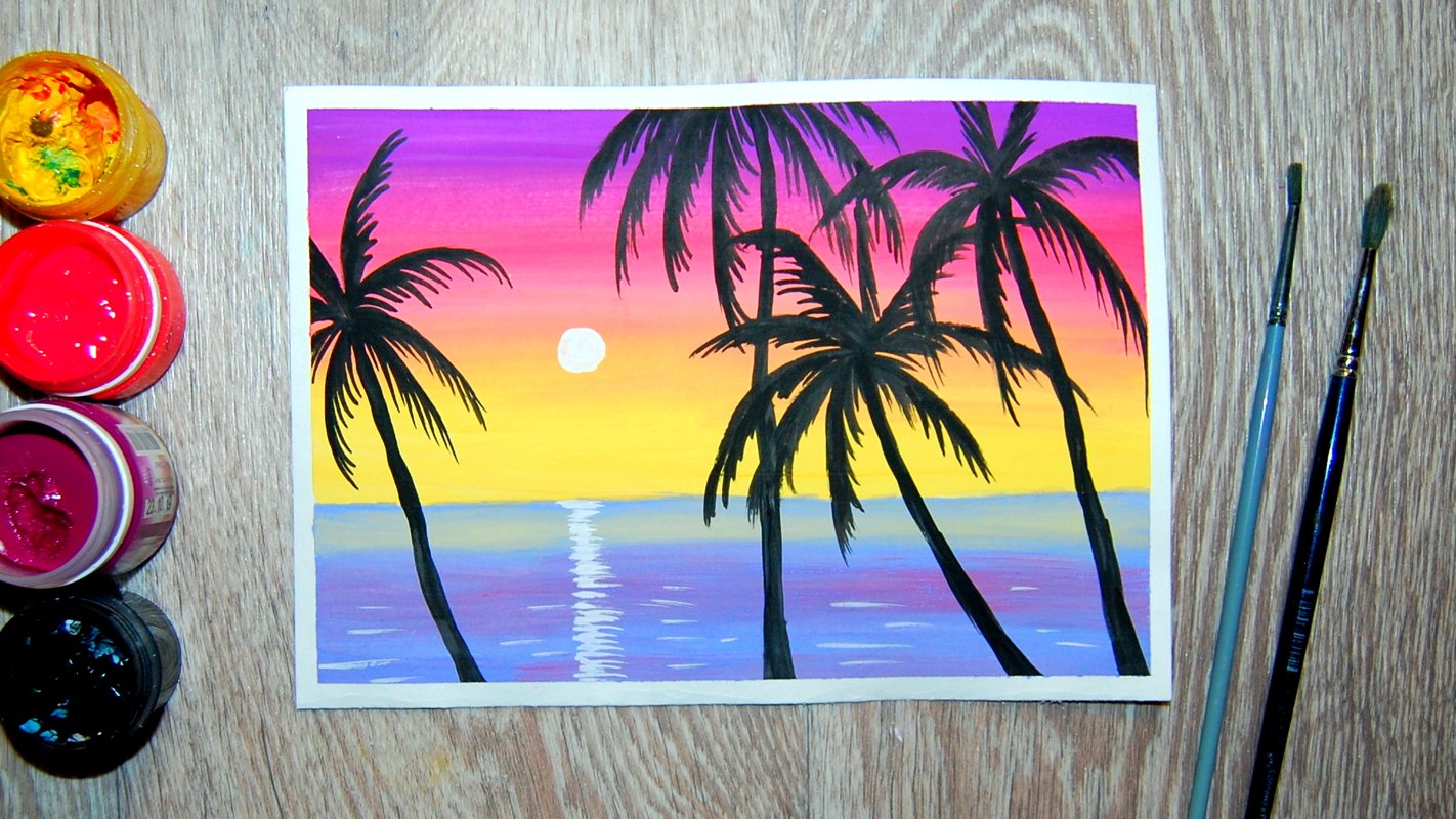 Как нарисовать пальмы на закате