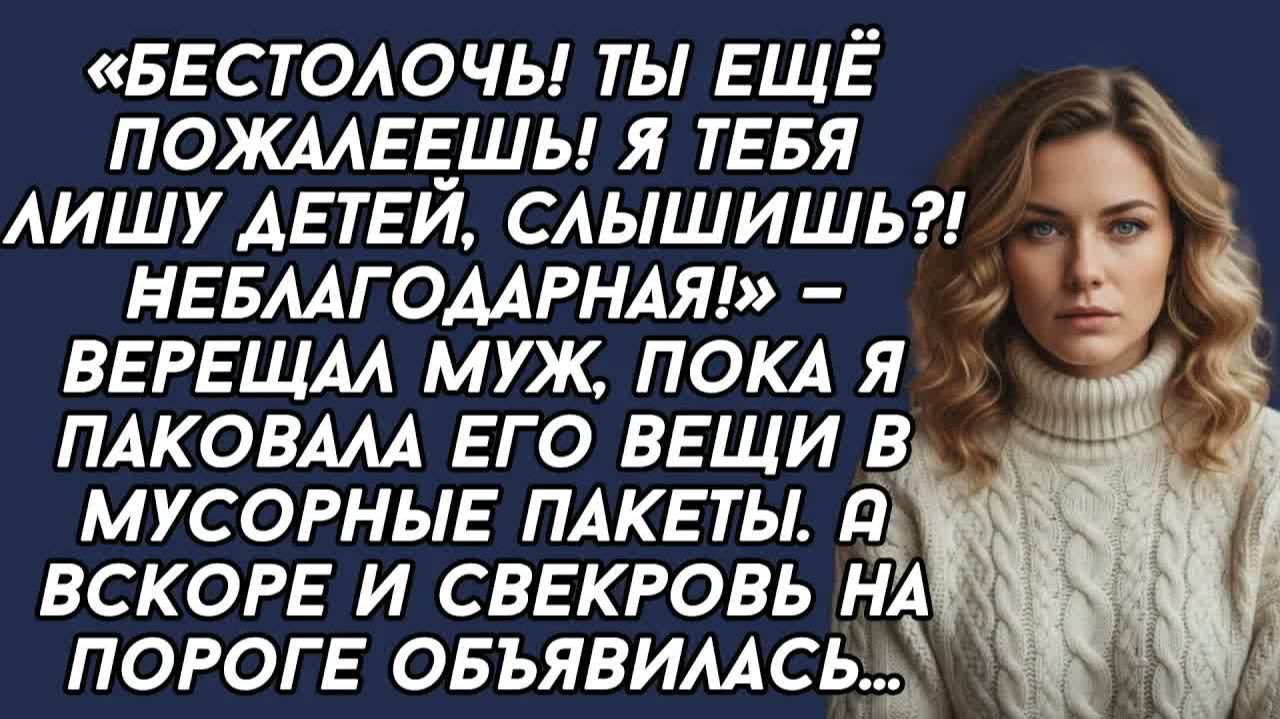 Ты ещё пожалеешь! Я тебя лишу детей, слышишь?! Неблагодарная! —верещал муж, пока я паковала его вещи