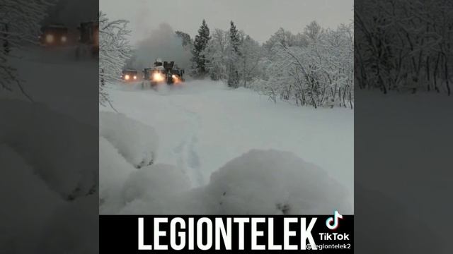 Сдесь показывают военную машину расчистителя дороги от снега,чтобы спокойно могла пройти остальная военная техника.