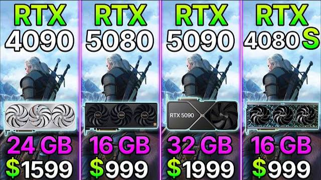 Full RTX 5090 & 5080 Review and Unboxing: https://t.me/+wrz0hHjOPUE5ZTli RTX 4080 Super 16 GB vs RTX 4090 24 GB vs RTX 5080 16 GB vs RTX 5090 32 GB - 4 of the World's Most Powerful GPUs in one comparison! Write in the comments which GPUs I should test in the next videos, also subscribe to my channel because soon I will upload RTX 5070 vs RTX 4090 test! System: GeForce RTX 5080 16 GB / RTX 5090 32 GB / RTX 4080 Super 16 GB / RTX 4090 24 GB AMD Ryzen 7 9800X3D ASUS ROG STRIX X870-I GAMING WIFI Kingston FURY Beast Black 32 GB DDR5 6000MHz SSD M2 Samsung 990 Pro 7450 MB/S 2TB be quiet! STRAIGHT POWER 12 1200W