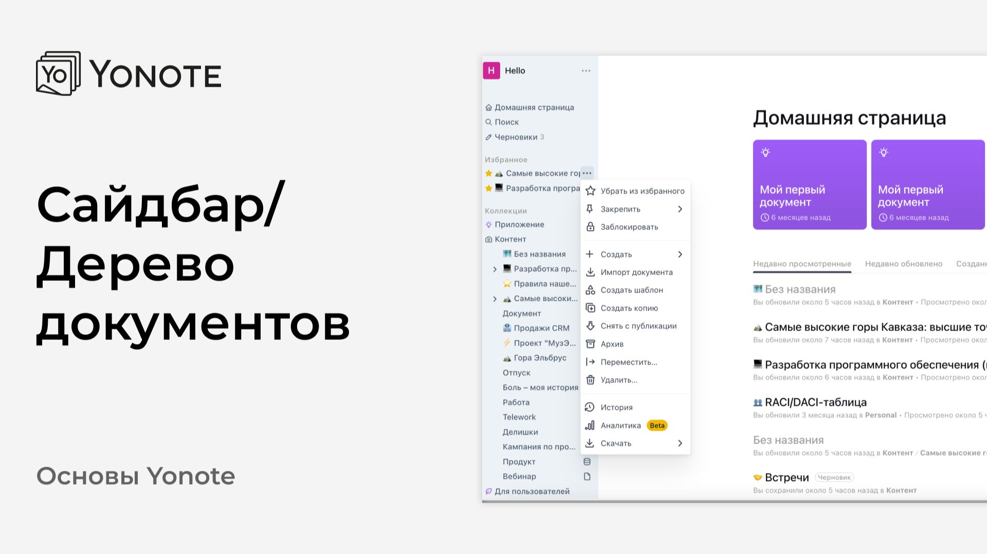 Сайдбар/Дерево документов в Yonote