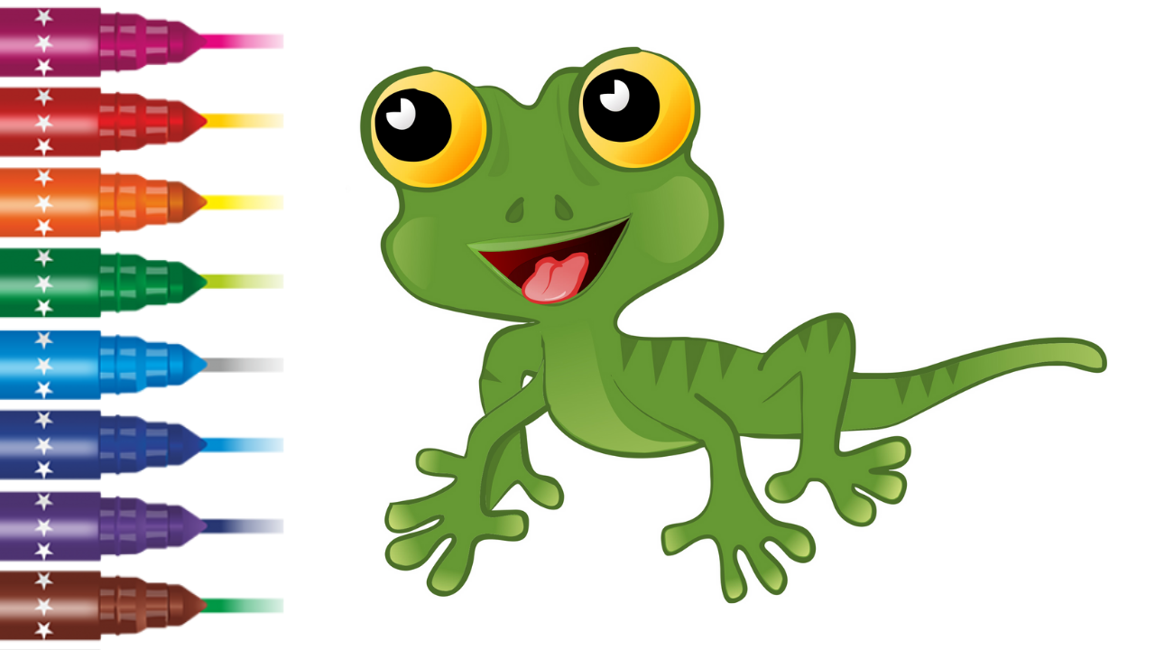 Поэтапное рисование ящерицы. Рисую мультяшную ящерицу фломастерами.