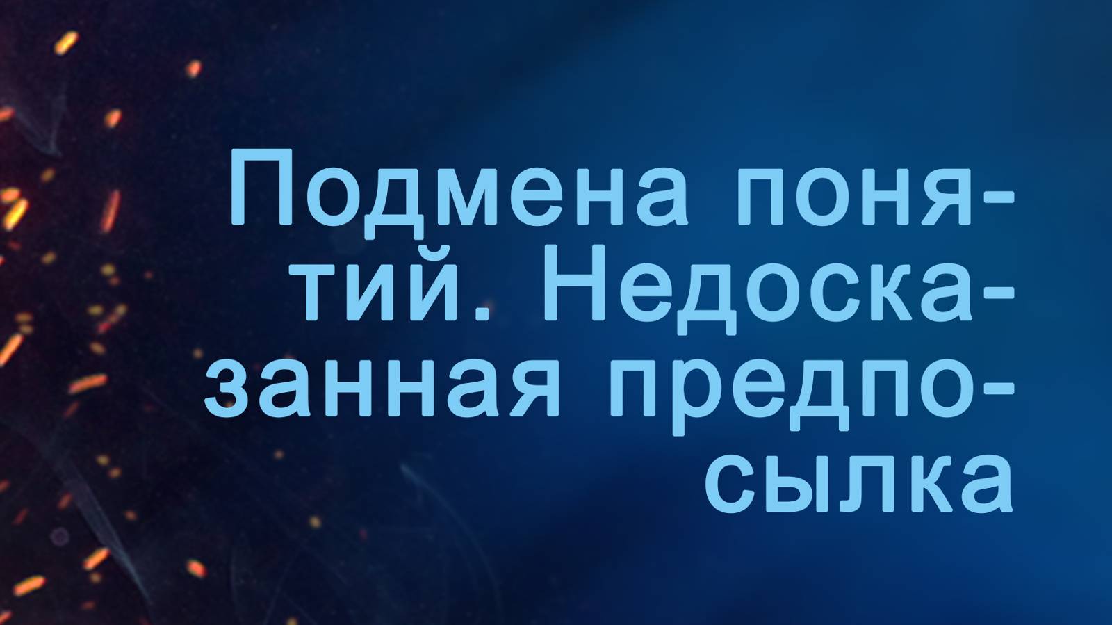 В этом фрагменте лекции "Христианская апологетика и логика" преподаватель Сергей Головин рассматривает две логические ошибки: подмена понятия и недоказанная предпосылка. Подмена понятия неизбежна, если с самого начала не договориться о значении используемых понятий, не дать им ясных и однозначных определений. Суть ошибки "недоказанная предпосылка" заключается в том, что аргумент содержит предпосылку, истинность которой подразумевается, хотя и не была доказана. Преподаватель приводит примеры, которые научат распознавать эти виды ошибок. Пройти онлайн-обучение по этому и другим библейским курсам Вы можете на сайте tvseminary.com