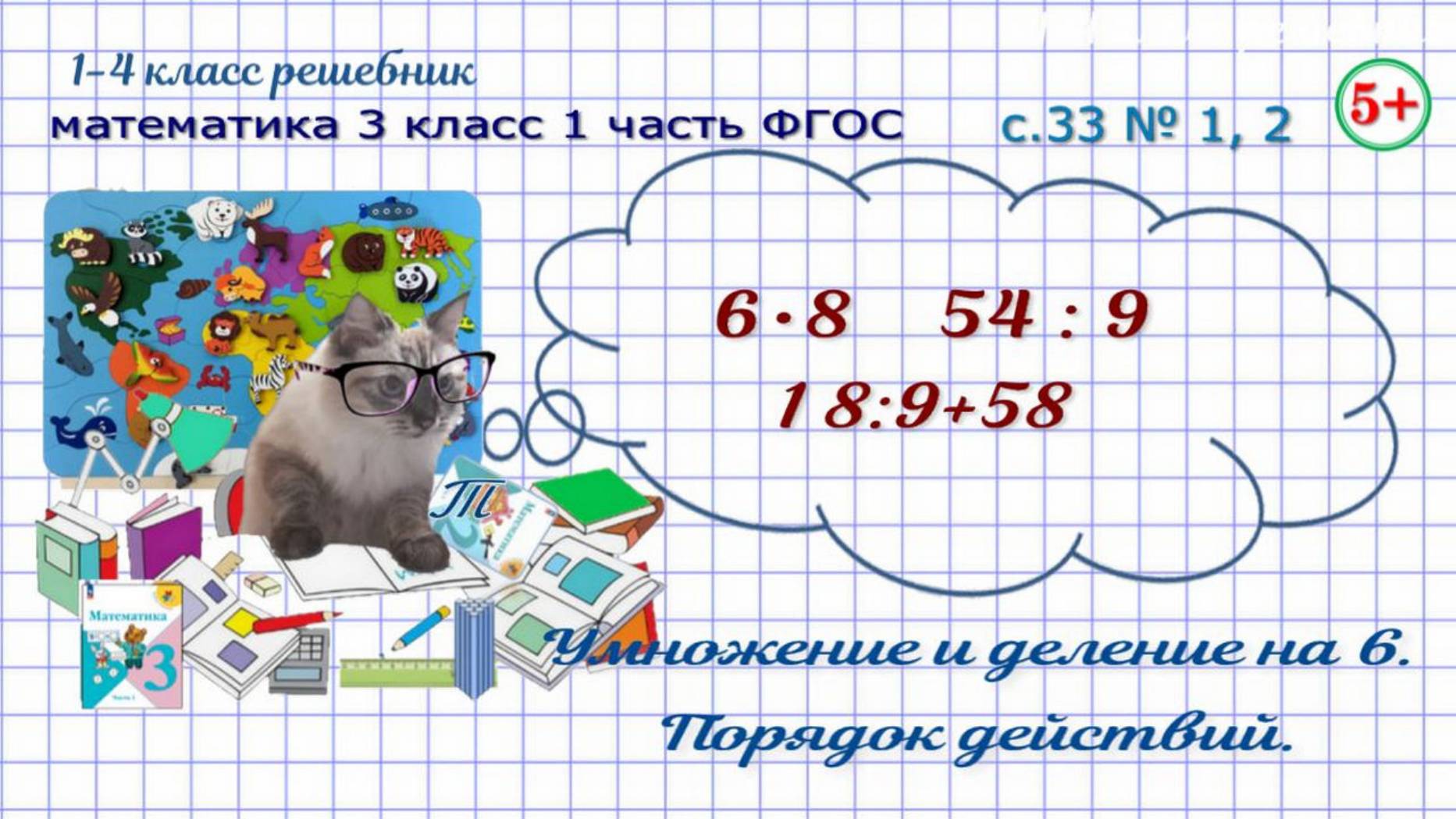 Стр. 33 № 1, 2 таблица умножения и деления на 6, порядок действий математика 3 класс 1 часть ФГОС