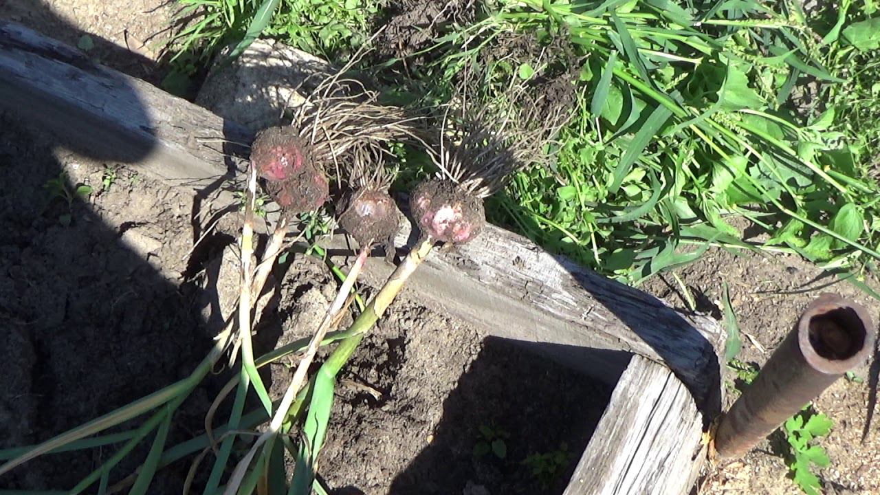 Озимый чеснок, уборка урожая.