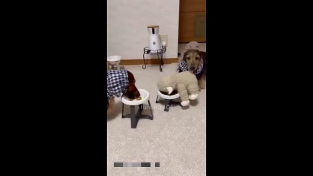 Собака кормит своих друзей