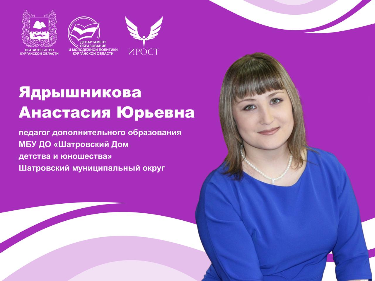 Фестиваль педагогического мастерства - 2024. Номинация "Лучший педагог дополнительного образования". Мастер-класс. Ядрышникова Анастасия Юрьевна - педагог дополнительного образования МБУ ДО "Шатровский Дом детства и юношества". Курганская область. Шатровский муниципальный округ.