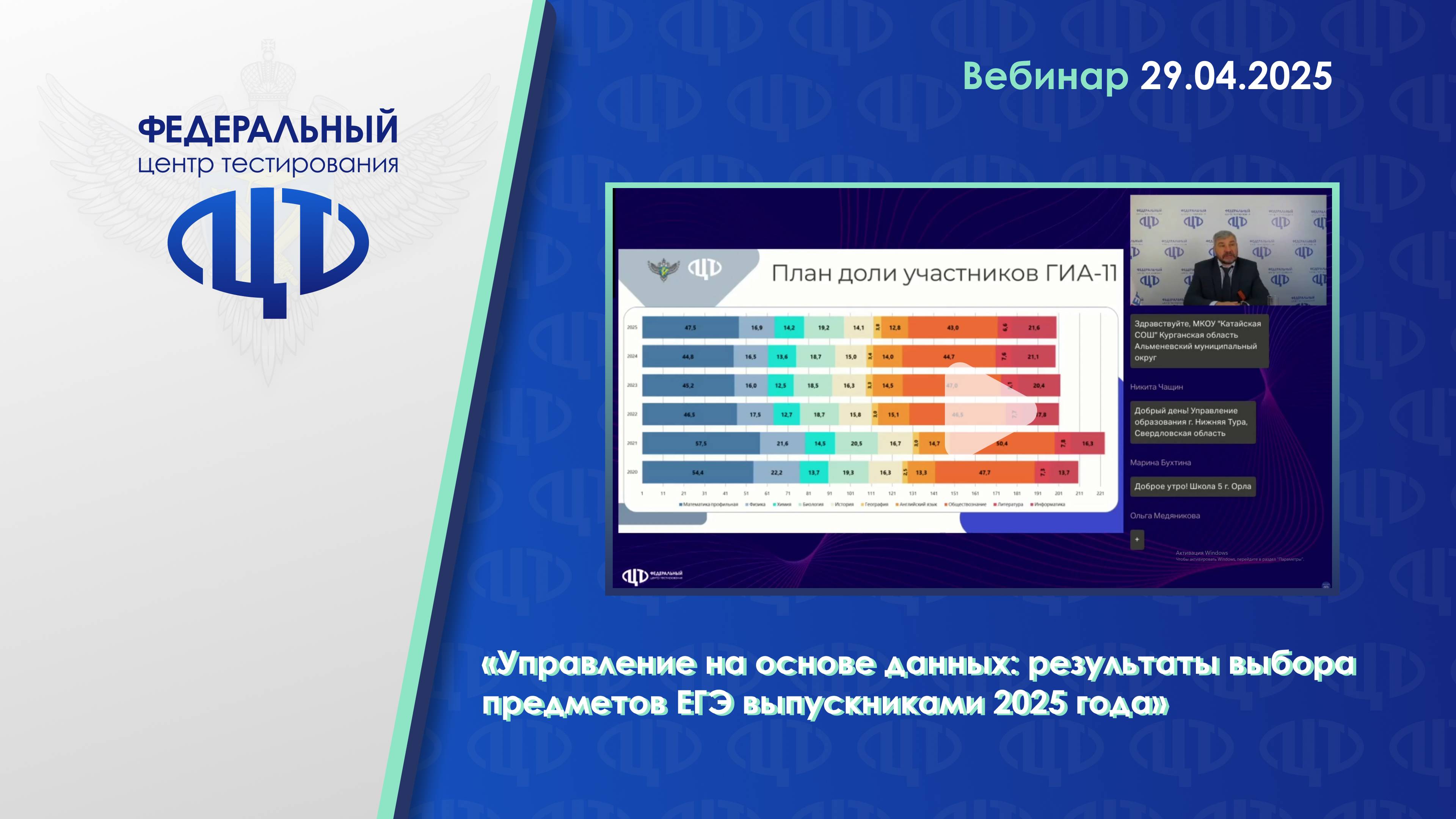 Управление на основе данных результаты выбора предметов ЕГЭ выпускниками 2025 года (Илюхин Б.В.)