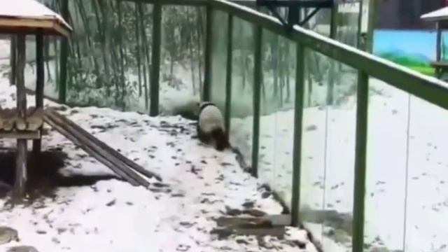 Панда очень мило радуется снегу Ржу не могу! )) #Мемосяндия #мем #мемы