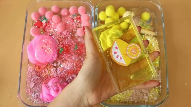 СЛАЙМ - «Вишня против лимона» , блёстки в слайм! Видео со слаймом!★ASMR★