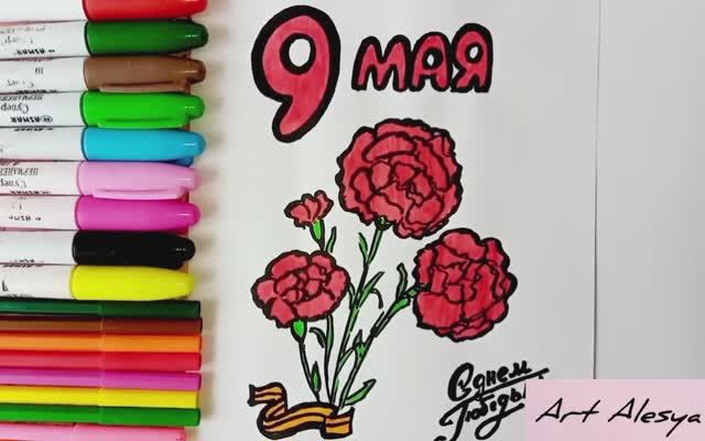 Простой красивый рисунок на День Победы 9 мая!