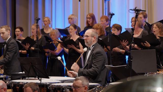 Das Kreisorchester Borken mit seinem Dirigenten André Baumeister führte diese Komposition im Rahmen des 33. Gedenktages der deutschen Einheit in der Stadthalle in Borken auf. Die Komposition "Freiheitssinfonie - Wir sind das Volk" beschreibt als sinfonische Dichtung den Freiheitsgedanken des deutschen Volkes und die Wiedervereinigung Deutschlands 1989. Dabei durchdringen immer wieder Tonzitate der Nationalhymne der ehemaligen DDR den musikalischen Bogen, unterbrochen von den stets lauter werdenden und in die Freiheit drängenden Rufen „Wir sind das Volk“. Weltberühmte Audiozitate von Walter Ulbricht, John F. Kennedy, Willy Brandt und anderen großen Staatsmännern zur Entstehung und dem Fall der Mauer wecken bei den Zuhörern Erinnerungen an einen der traurigsten Teile deutscher Geschichte, aber auch an die unbändige Freude über die friedliche Revolution, die zur Wiedervereinigung Deutschlands führte. Unaufhaltsam mündet das Werk in einer außergewöhnlich kontrastreich arrangierten und instrumentierten Deutschen Nationalhymne. Schnelle Tonfolgen bei den Holzbläsern spiegeln die Hektik und Aufgeregtheit der ersten Stunden der Maueröffnung wider, bis ein unmissverständlicher Orgelklang das neue Kapitel der Deutsch-Deutschen Geschichte wie eine Marmorsäule bestätigt. Angereichert mit beeindruckendem Chorgesang erklingt am Ende das großen Finale mit Orchester und Orgel, welches die Hoffnung auf Freiheit für das deutsche Volk wiedergibt. Der Komponist Guido Rennert ist selbst ein Kind der Einheit und in Sachsen geboren. Seine Leidenschaft und Freude, mit der er aus dem großen Klangfarben-Spektrum eines Blasorchesters seine Komposition verwirklichte, ist unüberhörbar. Kreisorchester Borken: https://www.kreisorchester-borken.de Dirigent: André Baumeister @AndreBaumeister Projektchor des Kreisorchester Borken Chorleitung: Stephan Lemanski Video Projektion: Robert Feldhaus Livesound RWSound Rüdiger Wolbeck FOH-Mix, Audio Liverecording und Post-Production Andreas Grotenhoff, audiVidual