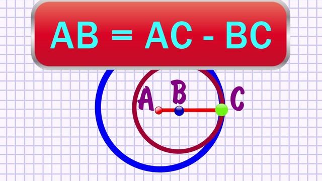 Касание называется внутренним, если центры окружностей лежат по одну сторону от точки касания окружностей. Построим две окружности, первая с центром A и радиусом AC, отметим на радиусе AC точку B, это будет центр второй окружности с радиусом BC:
