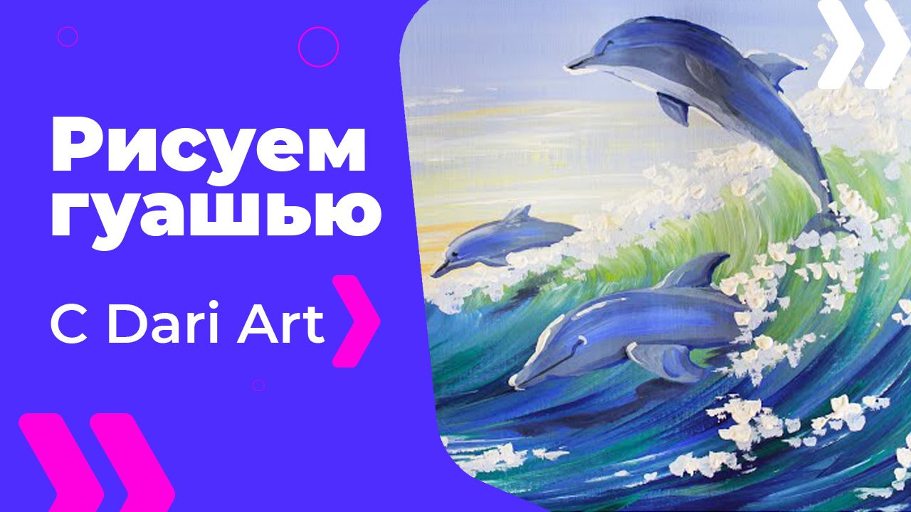 Бесплатный урок рисования! Как нарисовать дельфинов гуашью! Гуашь для начинающих!