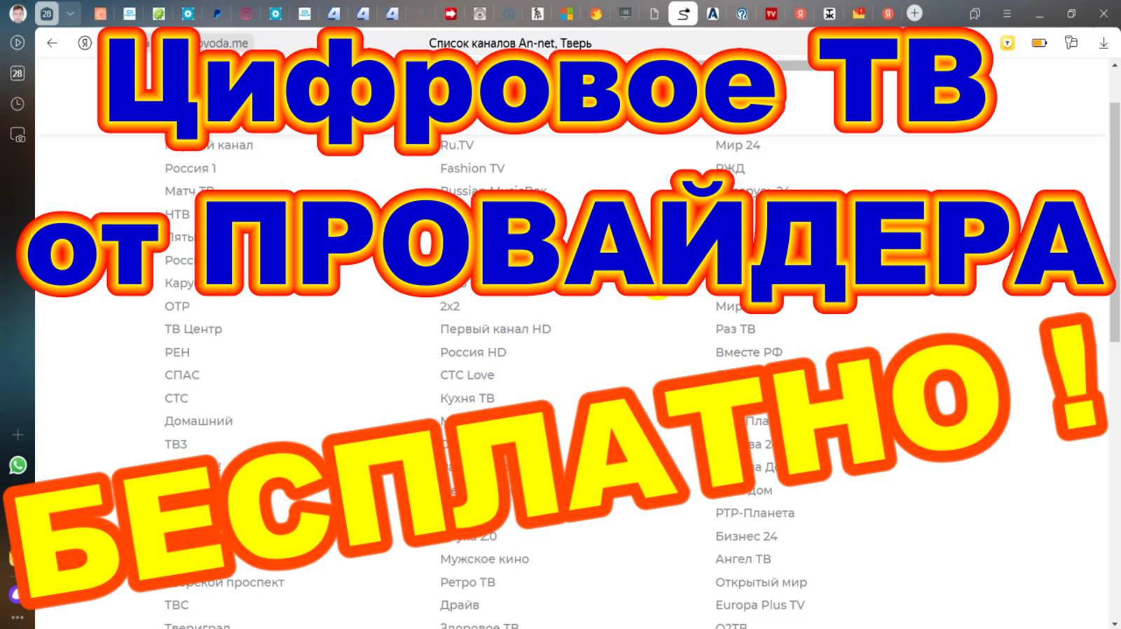 Цифровые ТВ КАНАЛЫ от ПРОВАЙДЕРА БЕСПЛАТНО !