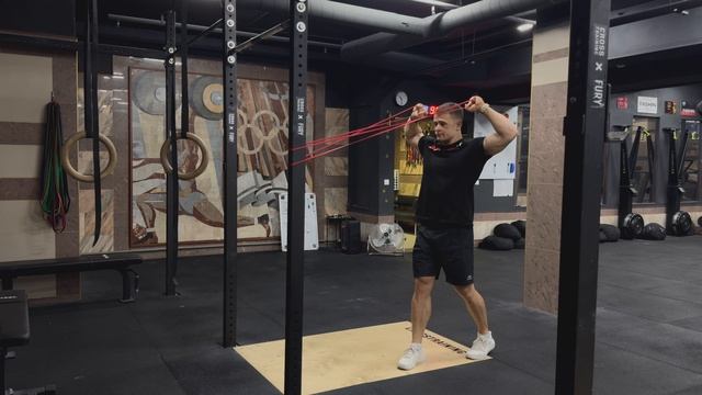 Тяга резины к лицу с вращением плеч наружу|Banded face pull with external rotation