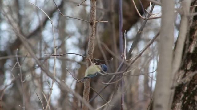 Странное поведение вороны, походу какой то вороний брачный ритуал. И просто синица в поисках пропитания.