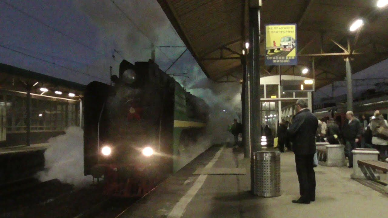 Паровоз П36-0120 отправляется с Курского вокзала после экскурсии . Снято 3 мая 2015 года. Снято на камеру Panasonic hc-v530