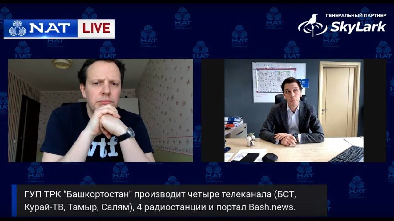 Интервью с генеральным директором ГУП ТРК "Башкортостан" Рустамом Зарафутдиновым -- Тайм-план 00:00 Начало видео 01:13 – О продлении лицензий, обращении РАР в РТРС (Александр Широких) 02:27 – О письме главе Минкомсвязи Максуту Шадаеву 03:43 – ВГТРК запускает новый тематический канал на базе «Мосфильма» 05:51 – О партнере проекта «НАТ Live» (компания SkyLark) 07:30 – Предыдущие эфиры «НАТ Live» можно посмотреть на youtube-канале NATEXPO 10:07 – Представление гостя (А.Широких) 10:33 – Пандемическая ситуация в Башкортостане (Рустам Зарафутдинов) 17:50 – В каком режиме работает телеканал? Как выходят новости? 20:00 – Планируете ли сокращение сотрудников? 21:36 – Как изменилась программная сетка? 26:46 – О телеканалах холдинга 27:47 – Показатели телесмотрения по Media Hills 28:46 – Какая ситуация с закупкой контента? 31:49 – О сотрудничестве с «Регион Медиа» 35:18 – Показатели радиослушания 36:28 – Серьезное падение рекламных доходов на телевидении 38:11 – О возможном кандидате на пост главы Агентства по печати и СМИ 40:15 – О ценообразовании в условиях кризиса 42:22 – Вопрос спонсорства 45:05 – Впервые: бесплатная реклама для бизнеса 45:40 – О дотациях из бюджета и собственных доходах 47:15 – Об идеях и наработанных кейсах по удержанию клиентов 53:33 – Личное: фигурка Йоды на столе 55:09 – Обращались ли к властям за дополнительной поддержкой? 56:01 – О телеканале «Салям» и планах на «22-ю кнопку» 01:01:47 – «Салям» пойдет на «22-ю кнопку»? 01:02:40 – О «самочувствии» портала Bash.news 01:06:14 – Об идее запуска трансляций киберспорта 01:13:30 – О телеканале «Тамыр» 01:15:18 – На каких условиях привлекаете лидеров общественного мнения?