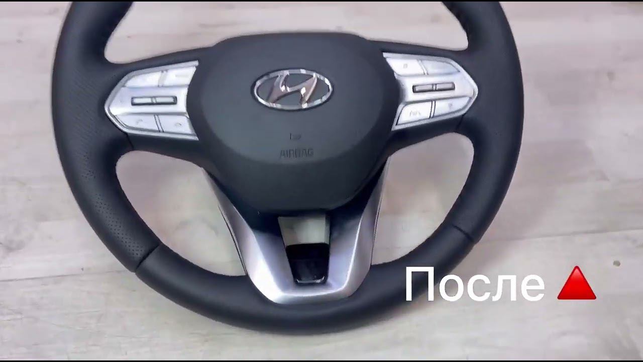 Подробнее по услуге: Hyundai Santa Fe - перетянули руль в экокожу под оригинал со вставками из псевдоперфорации с утолщением