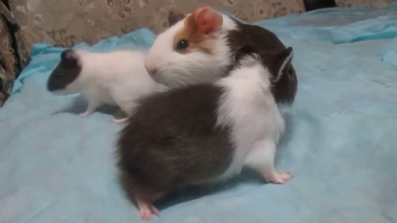 Морские свинки и папа свин гуляют по дивану пока чистят клетку, взаимная подписка