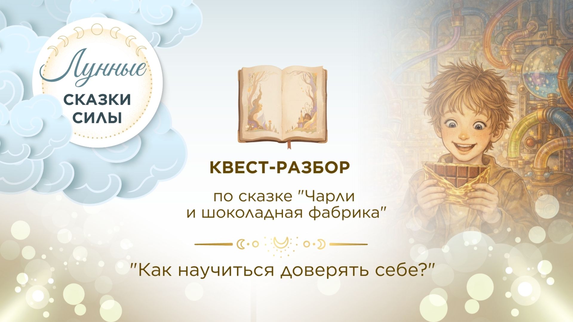 🍫 Квест-разбор по сказке «Чарли и шоколадная фабрика» Метод Нейролегенды Почему мы сомневаемся в себе, сравниваем себя с другими и боимся «не выиграть»? В этой сказке Чарли не побеждает через борьбу. Он проходит испытание иначе — через честность, выдержку и доверие себе. И именно это делает его тем, кто получает всё. В этом квест-разборе мы вместе пройдём путь: 🍫 через искушения и сравнение 🌪 через внутренний шум «я хуже / я лучше» ✨ к состоянию, где можно опираться на себя без гонки, без доказательства, без напряжения Метод Нейролегенды помогает прожить сказку как внутренний процесс: увидеть свои сценарии, распознать ловушки мышления и выстроить новый путь — через доверие себе. ✨ Во время просмотра: — останавливайте видео — отвечайте на вопросы — наблюдайте за ощущениями в теле Так разбор становится вашим личным опытом. 🌙 Продолжение практик, живые разборы и сообщество: 👉 https://t.me/+29jvOY1zXC0yNzVi 💫 Поддержать проект и внести донейшн: 👉 https://pay.cloudtips.ru/p/d809ced5 Иногда главный приз — это не победа над другими, а способность остаться собой.