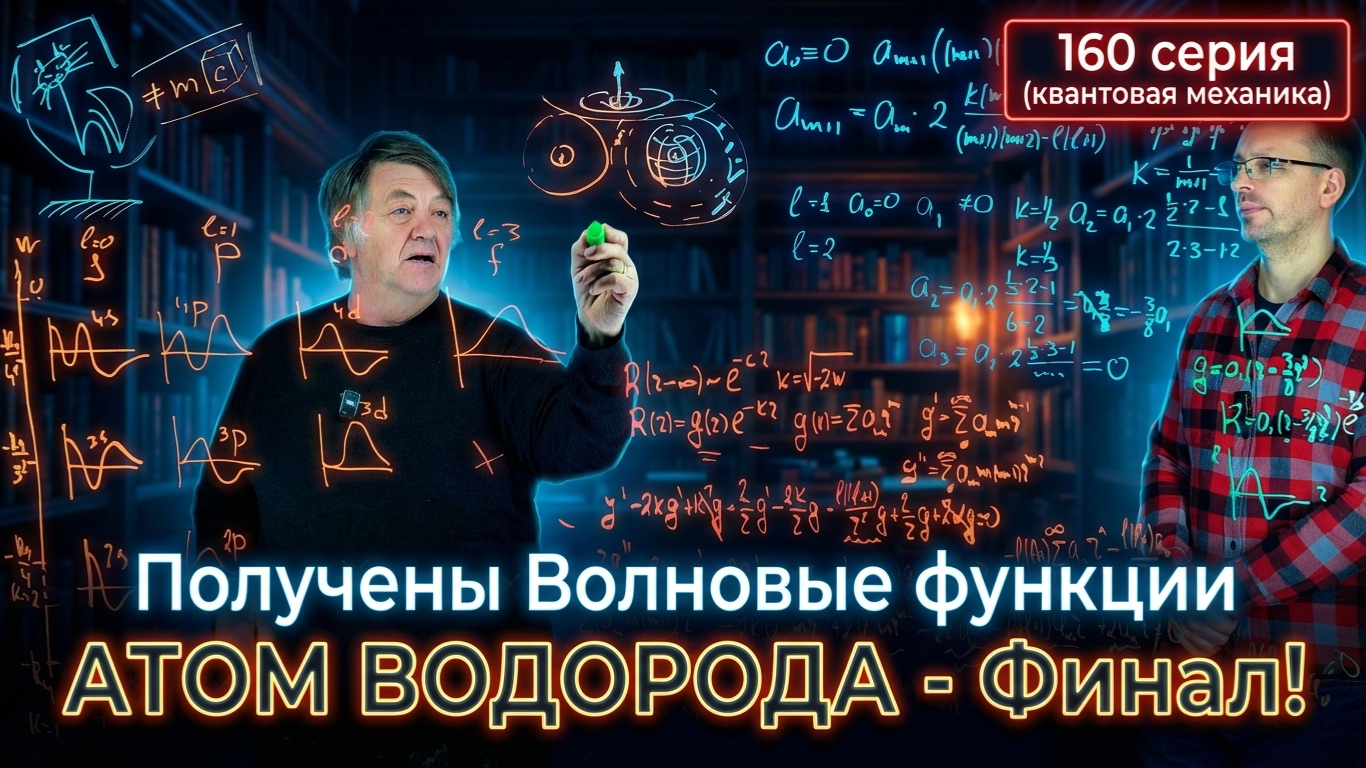 В этой лекции мы завершаем построение полной картины атома водорода в рамках нерелятивистской квантовой механики и переходим к обсуждению природы света. Мы подробно разберем, как математическое решение радиального уравнения Шредингера приводит к возникновению строгих правил квантования и формирует геометрические формы электронных орбиталей, которые мы привыкли видеть в учебниках. Вы узнаете, почему электрон не может обладать произвольной энергией и как из сухих формул рождается физическая реальность микромира. ------------------------------------------------------------------------------- Канал «Научная Тематика»! Поддержать канал Донатом🧧💰👇. Перевод на карту: Сбер: 4817 7601 3927 9347 Т-банк: 2200 7017 8811 7452 Сервисы раннего доступа, смотри видео раньше и поддержи канал: Подписка на Boosty • https://boosty.to/ivanovskiy/donate Подписка на VK_Donut • https://vk.com/donut/ivanovskiysergey Канал в соцсетях👇 Телеграм • https://t.me/ivanovskiysergey ВК • https://vk.com/ivanovskiysergey Дзен • https://dzen.ru/ivanovskiysergey Rutube •https://rutube.ru/video/person/30197834 ------------------------------------------------------------------------------- Лекция начинается с анализа поведения электрона на больших расстояниях от ядра. Мы ищем решение для радиальной части волновой функции, используя метод разложения в полиномиальный ряд. Ключевым моментом становится математическое требование конечности волновой функции: чтобы физический смысл сохранялся, ряд должен обрываться. Именно это требование, а не произвол физиков, приводит к появлению главного квантового числа и дискретных уровней энергии. Мы увидим, как естественным образом возникают ограничения на орбитальный момент, что порождает классификацию состояний на s, p, d, f и так далее. Особое внимание уделено визуализации полученных решений. Мы обсудим геометрическую форму различных орбиталей: от простых сфер s-состояний до сложных объемных фигур p и d-орбиталей, напоминающих гантели и вложенные торы. Вы поймете, что означают узлы волновой функции и как распределяется вероятность нахождения электрона в пространстве вокруг ядра. Эти “картинки” — не просто абстракция, а предсказание того, где именно “живет” электрон, хотя само понятие траектории в квантовом мире теряет смысл. Во второй части лекции мы переходим к фундаментальному вопросу взаимодействия атома со светом. Модель Бора и ранняя теория Эйнштейна дали нам понимание того, что свет испускается порциями — квантами, или корпускулами, при переходе электрона с одного уровня на другой. Однако классическая квантовая механика, построенная на уравнении Шредингера, сталкивается здесь с серьезной проблемой. Она описывает электрон как нерелятивистскую частицу, но свет (фотон) — это ультрарелятивистский объект, всегда движущийся со скоростью света. Это противоречие требует перехода к новой физике. Мы обсудим, почему понятие “корпускула” или “фотон” в контексте старой теории является лишь удобной моделью, которая “гибнет” при попытке измерения. Лектор объясняет, почему для корректного описания излучения необходимо переходить к релятивистской квантовой механике и квантовой электродинамике. Мы стоим на пороге уравнения Дирака и более глубокого понимания природы материи, где учитываются спин и релятивистские эффекты, приводящие к тонкому расщеплению спектральных линий. 0:00 Вступление 0:39 Много математики, которая ведёт нас к самым важным соотношениям 15:50 Получение самых важных коэффициентов 
