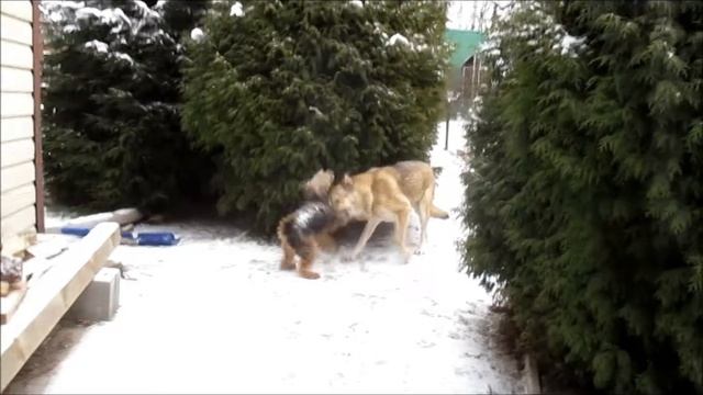 Снегопад в деревне и игры собак 15.12.2020.