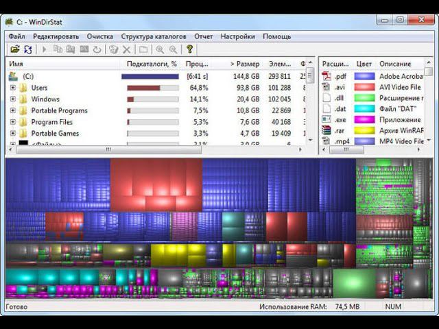 WinDirStat для анализа и очистки дискового пространства