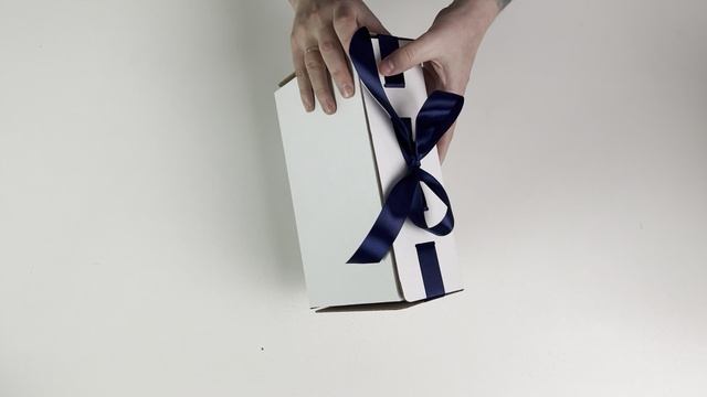 Новогодняя коробка Gofromir - 300х200х65 белая с синей лентой (без выреза)