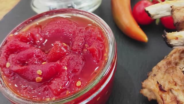Томатный джем. Отличный пряный соус к мясу.
