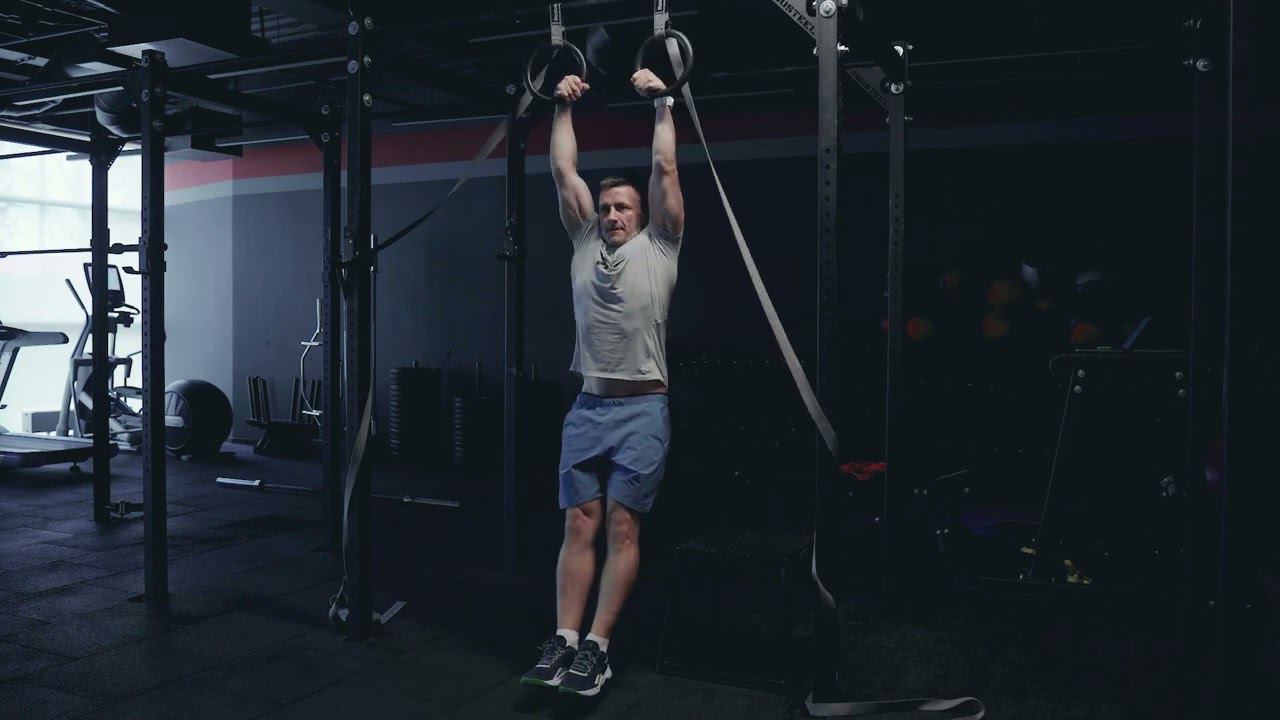 Подтягивания на кольцах глубоким хватом до груди/ False grip ring pull up
