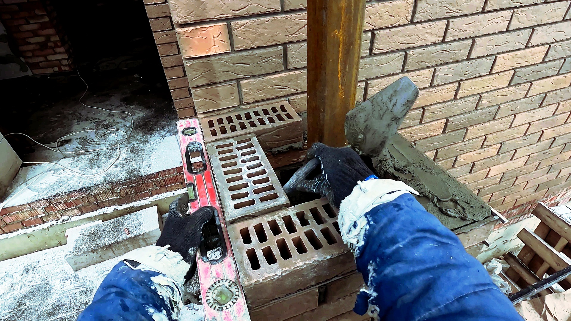 Кладка столба в два кирпича под прут