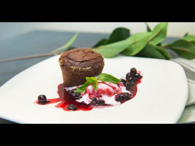Шоколадный фондан с ягодным соусом | ТОП-100