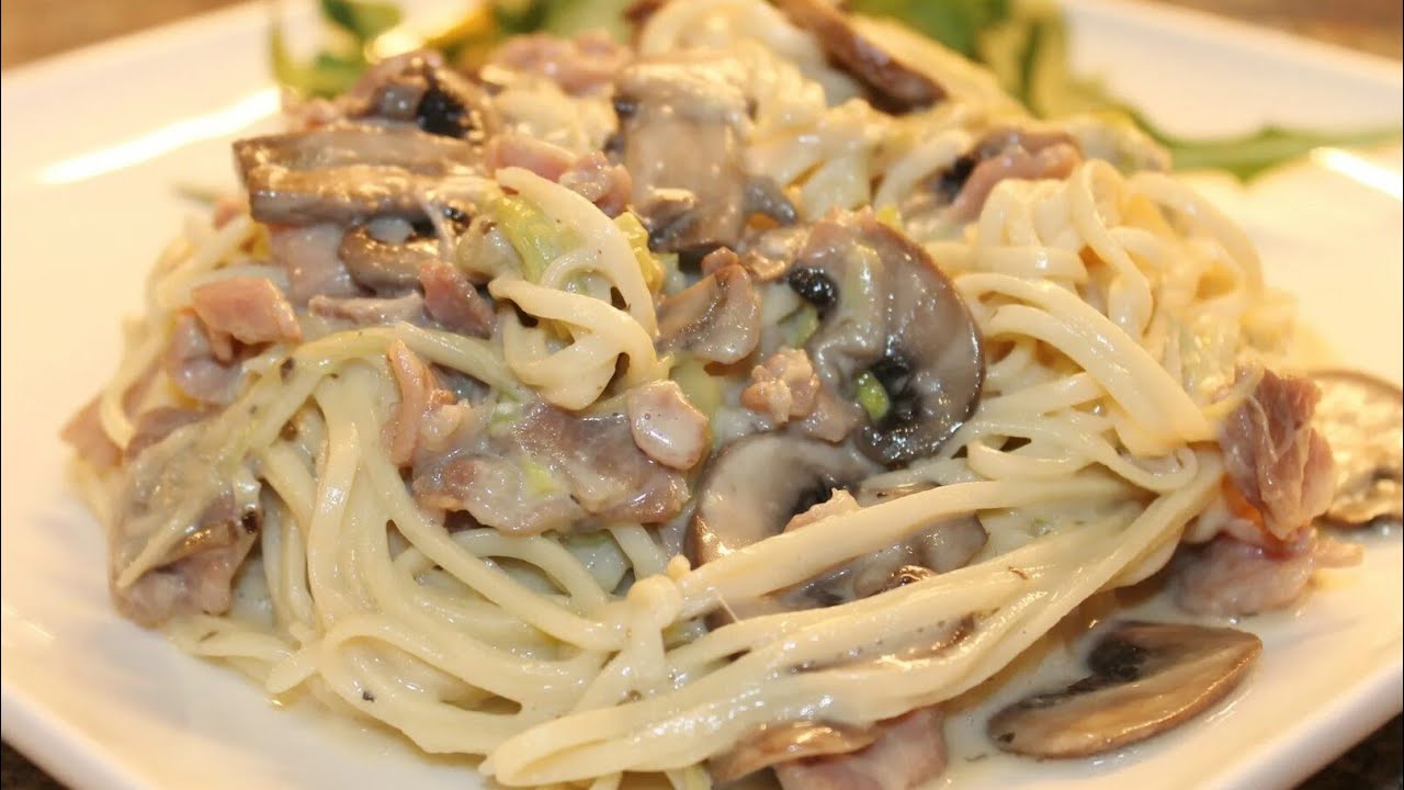 Спагетти со сливочным соусом и шампиньонами!