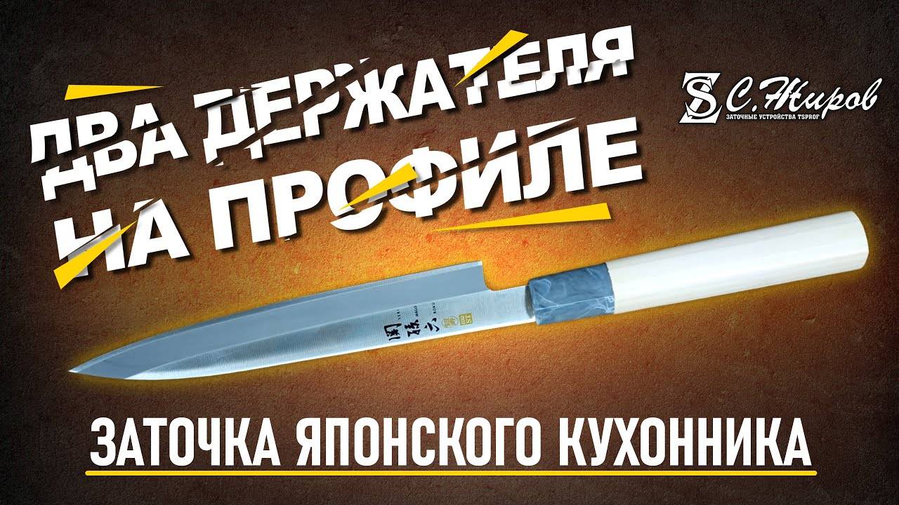 Односторонняя заточка японского ножа ЯНАГИБА. Два держателя на Профиле.